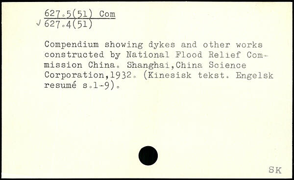 Compendium showing dykes and other works constructed hy National Flood Relief Commission China. Shanghai,China Science Corporation, .1932 , (Kinesisk tekst. Engelsk resume s0l-9).