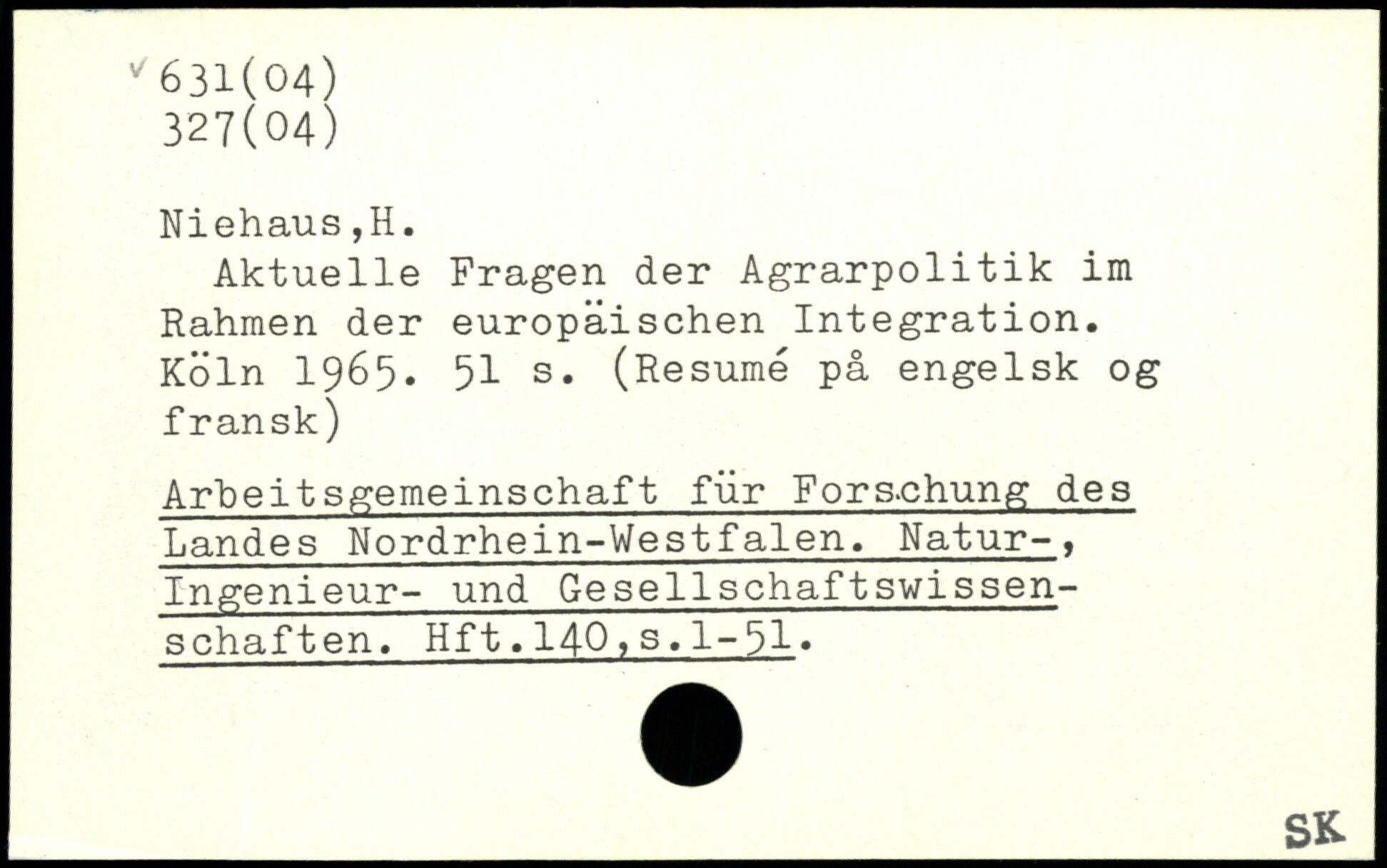 Aktuelle Fragen der Agrarpolitik im Rahmen der europäischen Integration.
