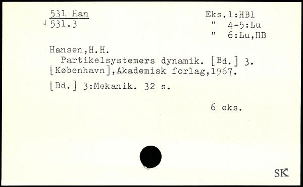 Partikelsystemers dynamik. [Bd.] 3. [København],Akademisk forlag,1967. [Bd.] 3:Mekanik.