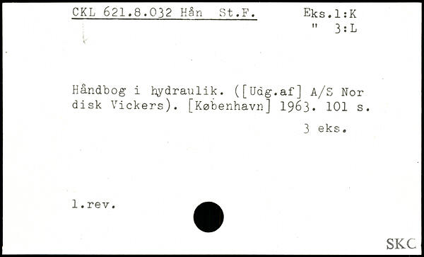 Håndbog i hydraulik. ([Uag.af] A/S Nor disk Vickers).