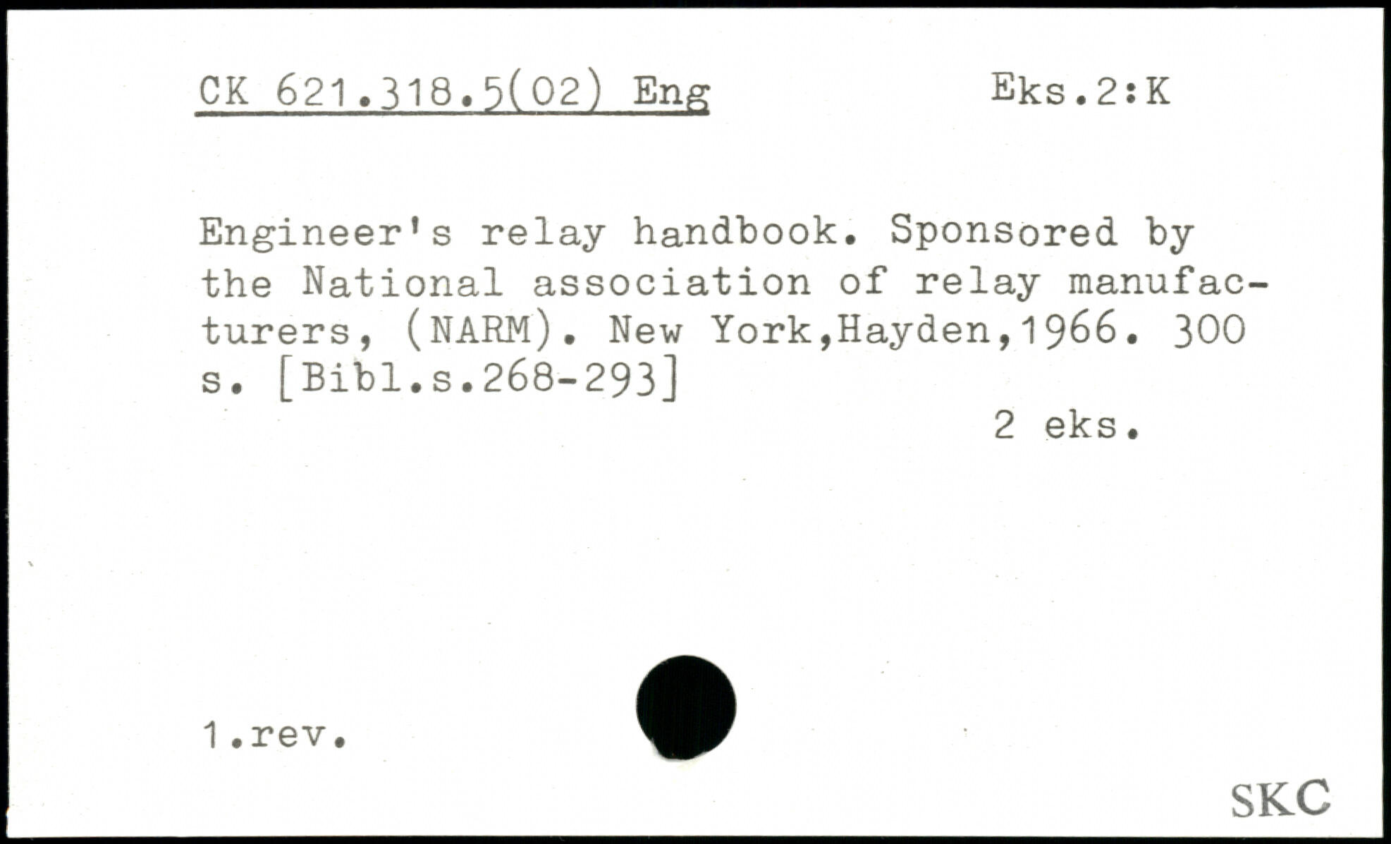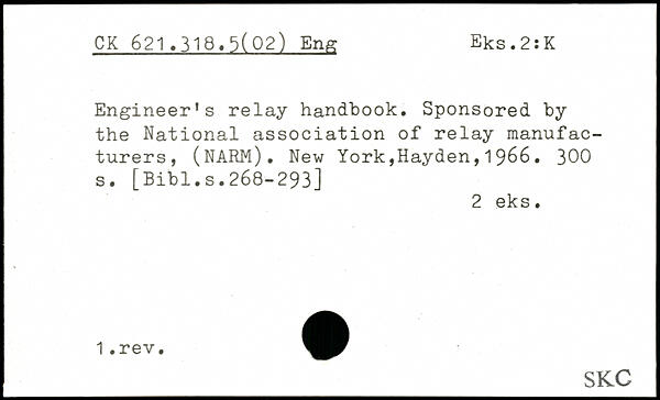 Engineer's relay handbook. Sponsored by the National association of relay manufacturers, (NARM).