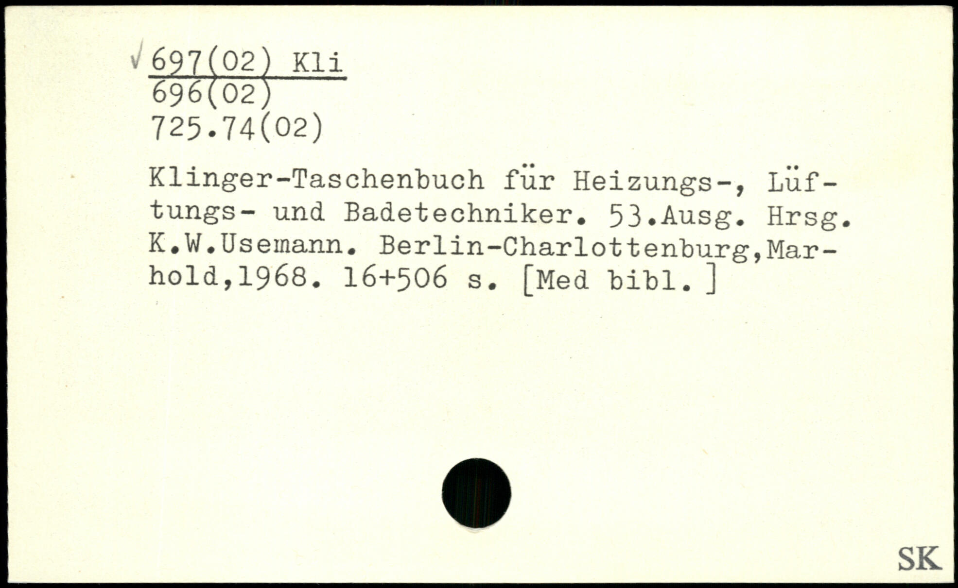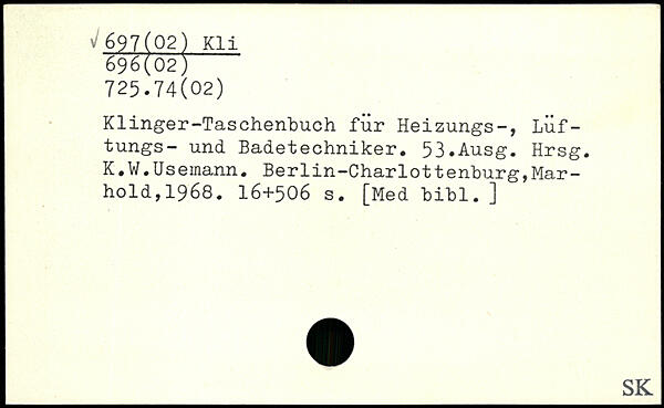 Klinger-Taschenbuch für Heizungs-, LÜf-tungs- und Badetechniker. 53.Ausg. Hrsg. K.W.Usemann.