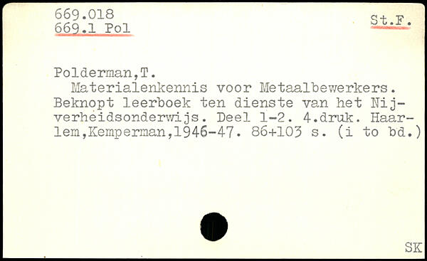 Materialenkennis voor Metaalbewerkers. Beknopt leerboek ten dienste van het Nij-verheidsonderwijs. Beel 1-2. 4.druk.