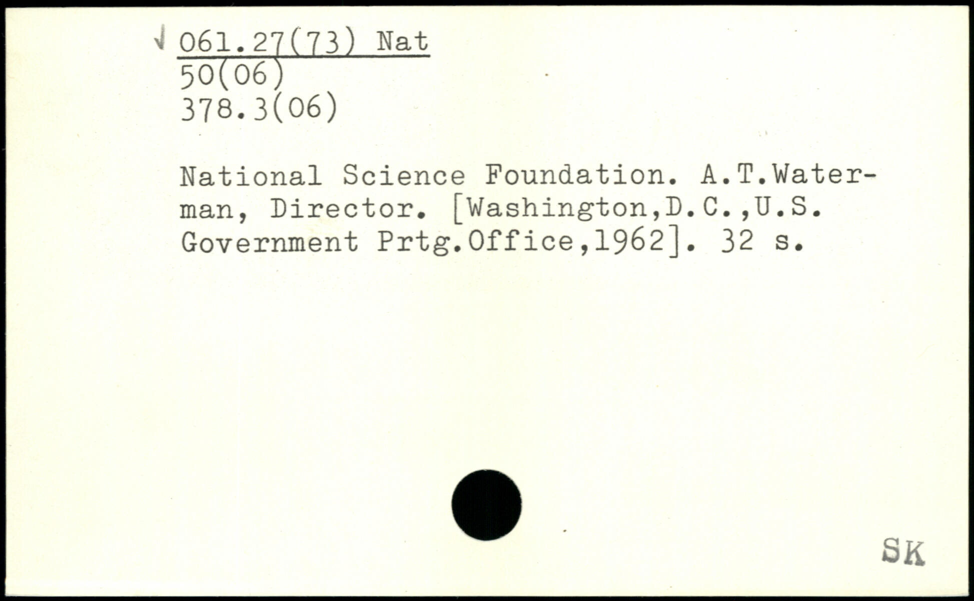National Science Foundation. A.T.Waterman, Director. [Washington,D. C. ,U. S. Government Prtg.Office,1962].