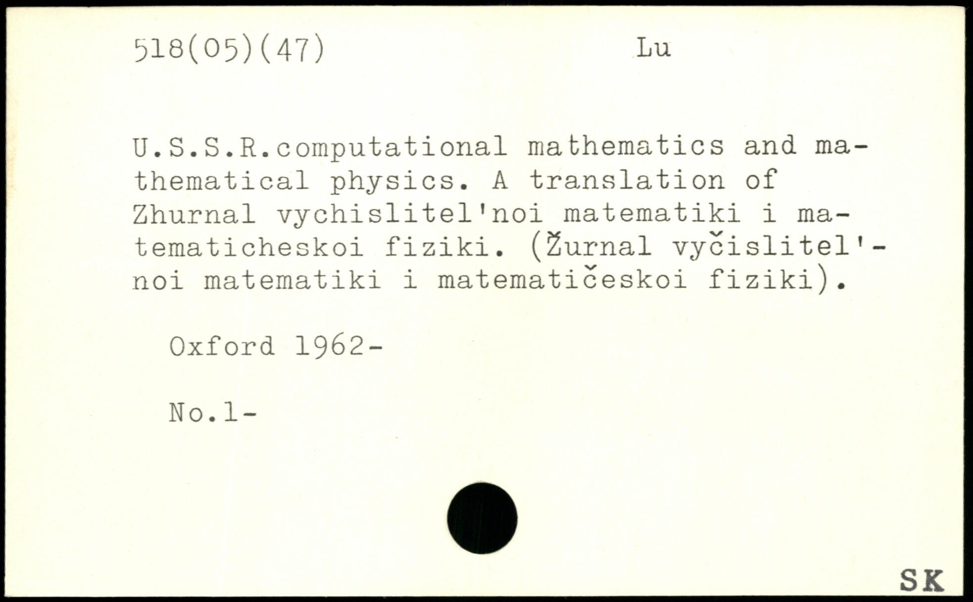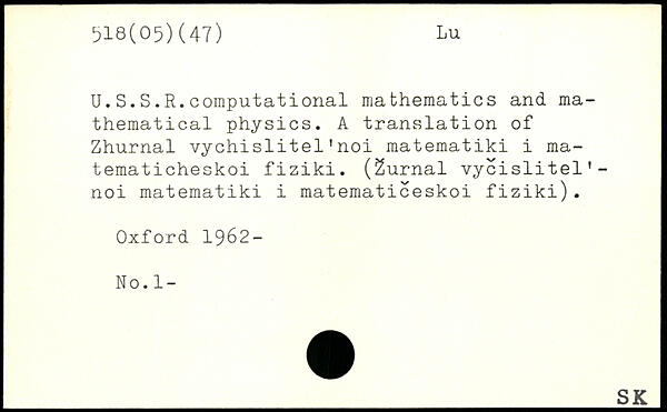 U.S.S.R.computational mathematics and mathematical physics. A translation of Zhurnal vychislitel1 noi matematiki i ma-tematicheskoi fiziki. (2urnal vycislitel'-noi matematiki i matematiceskoi fiziki).