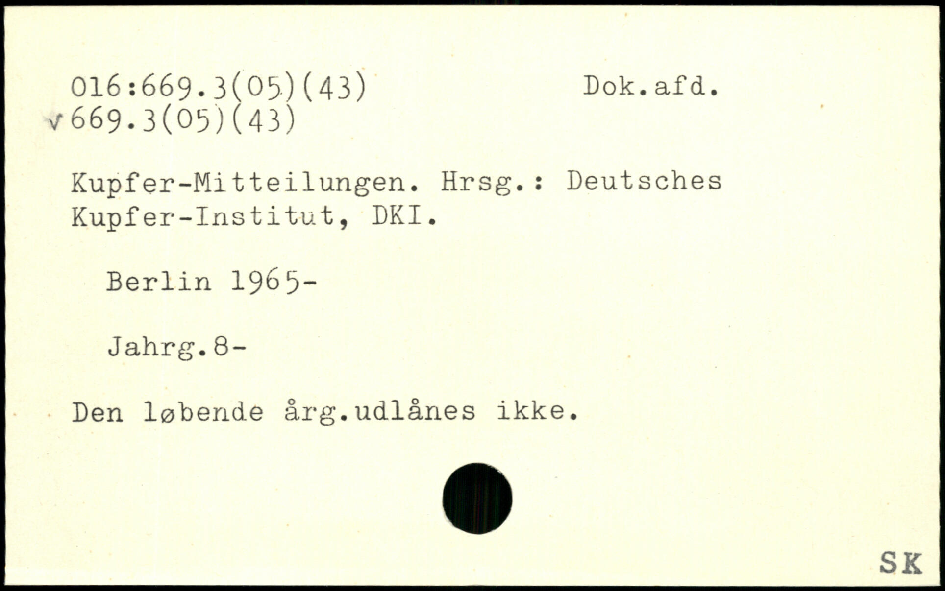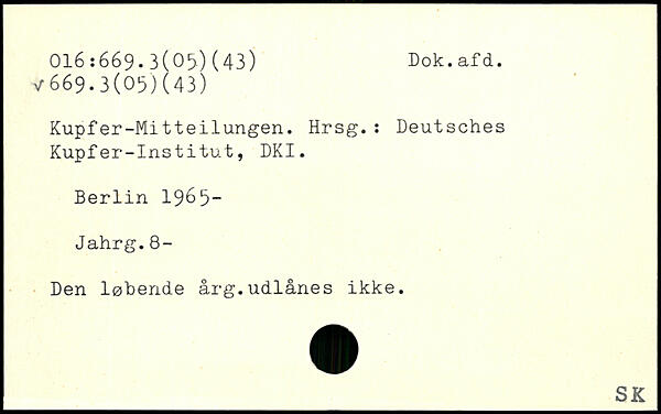 Kupfer-Mitteilungen. Hrsg.: Deutsches Kupfer-Institut, DKI.