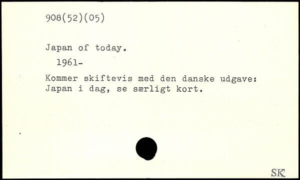 Japan of today. 1961- Kommer skiftevis med den danske udgaves Japan i dag, se særligt kort.