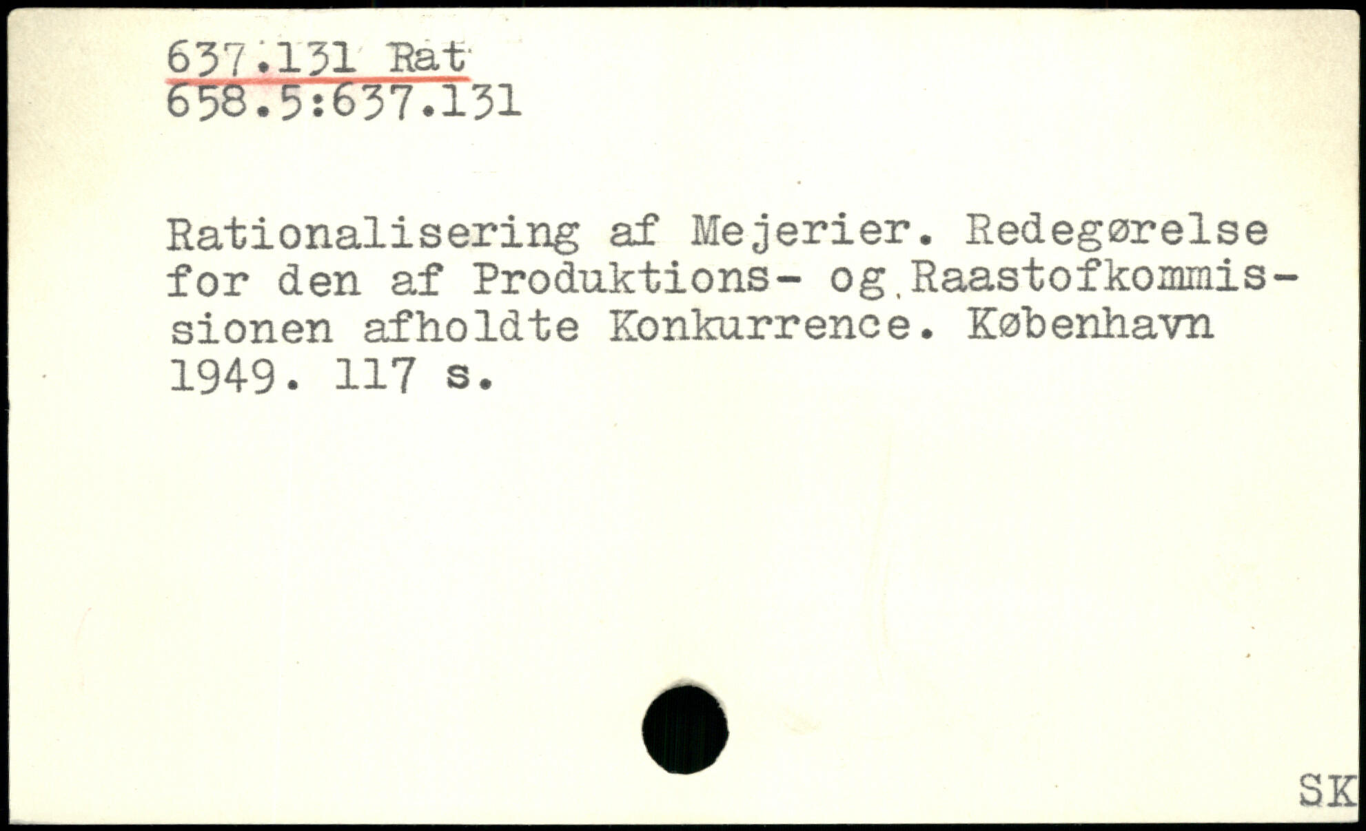 Rationalisering af Mejerier. Redegørelse for den af Produktions- og,Raastofkommissionen afholdte Konkurrence.
