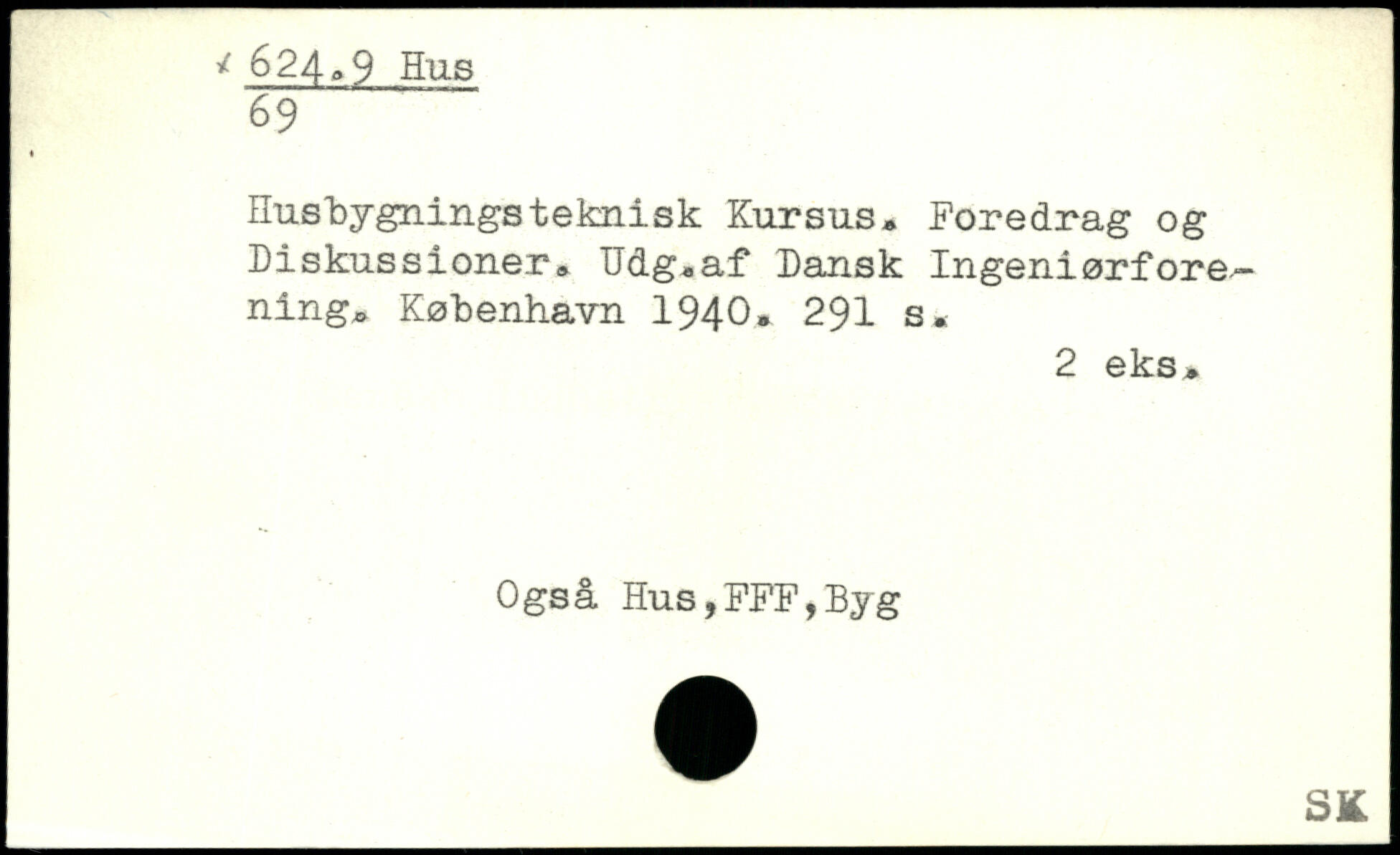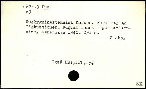 Hus "bygnings teknisk Kursus. Foredrag og Diskussioner. Udg.af Dansk Ingeniørfore-ning.