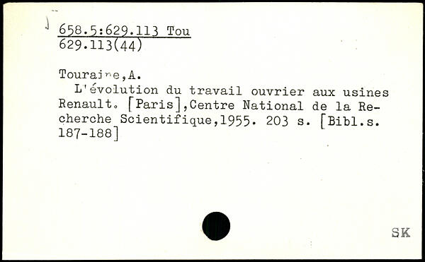 L'évolution du travail ouvrier aux usines Renault, [Paris],Centre National de la Recherche Scientifique,1955.