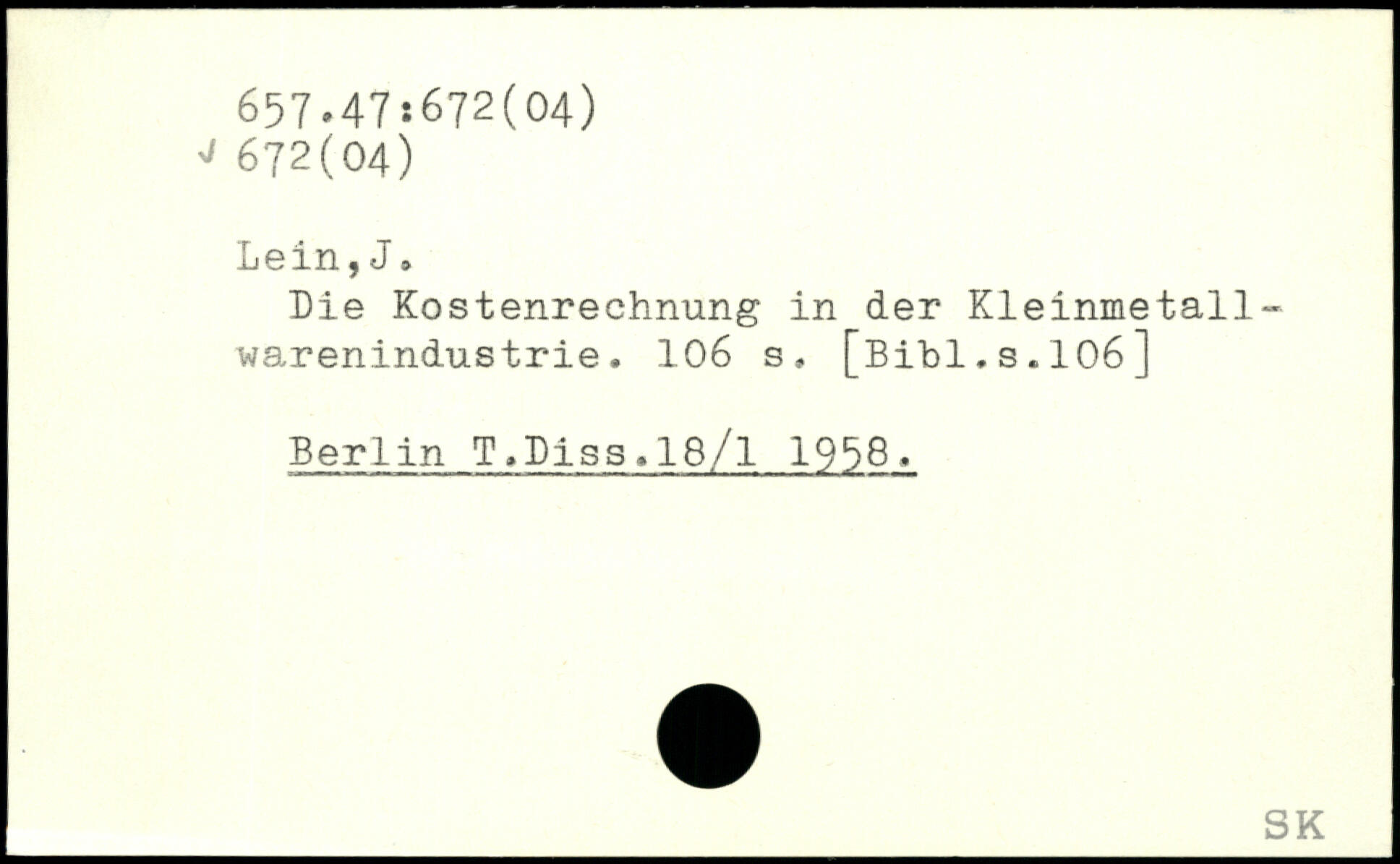 Lie Kostenrechnung in der Kleinmetallwarenindustrie. IO