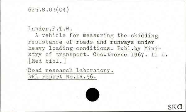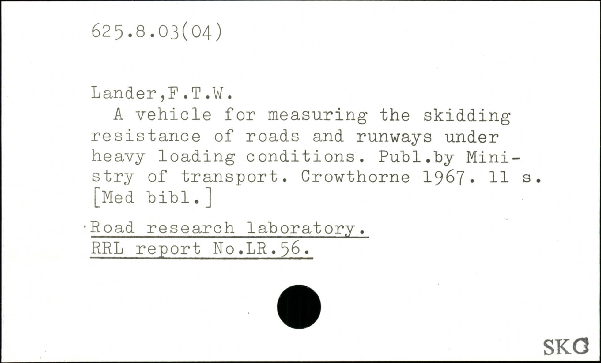 A vehicle for measuring the skidding resistance of roads and runways under heavy loading conditions. Puhl.by Ministry of transport. Crowthorne 1967.
