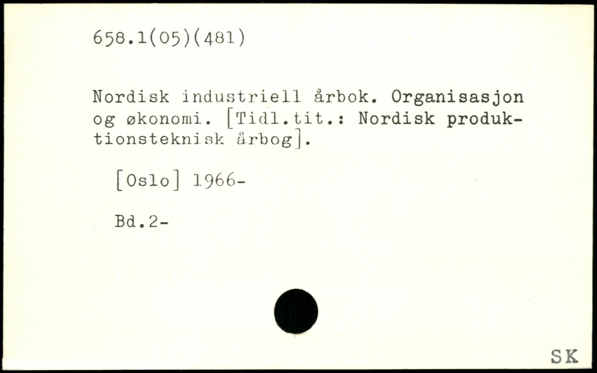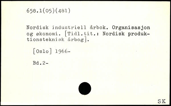Nordisk industriell årbok. Organisasjon og økonomi. [Tidl.tit.s Nordisk produktionsteknisk arbog].