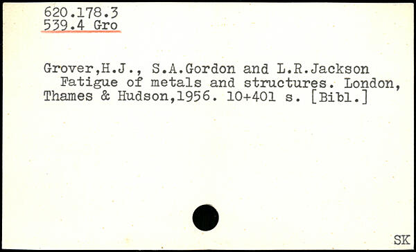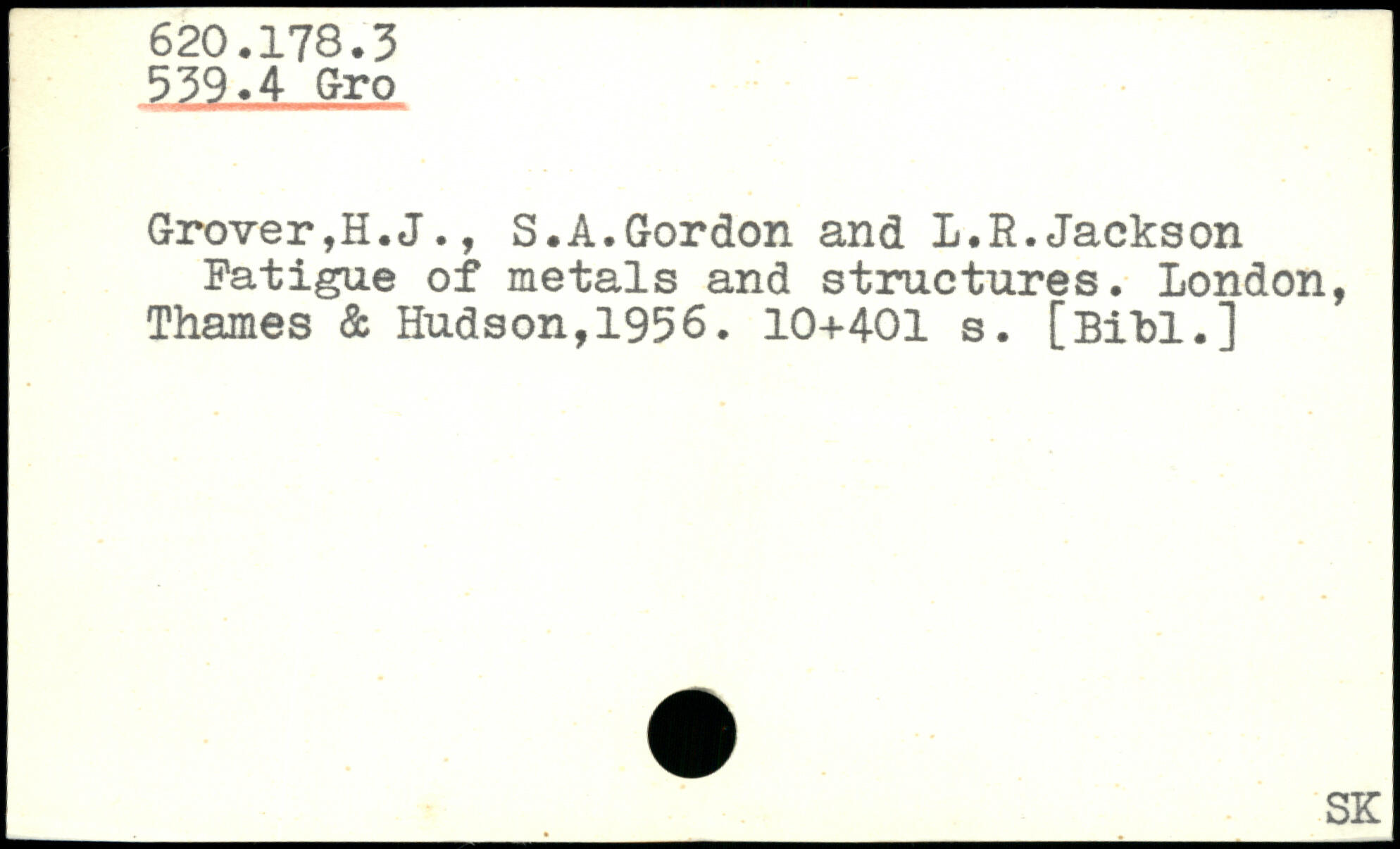 Grover,H.J., S.A.Gordon and L.R.Jackson Fatigue of metals and structures.