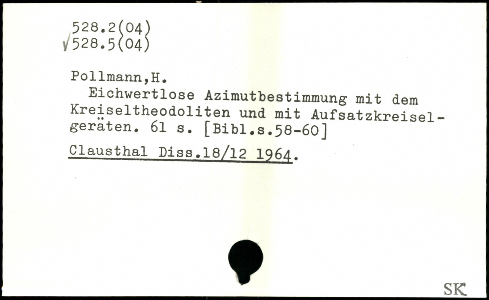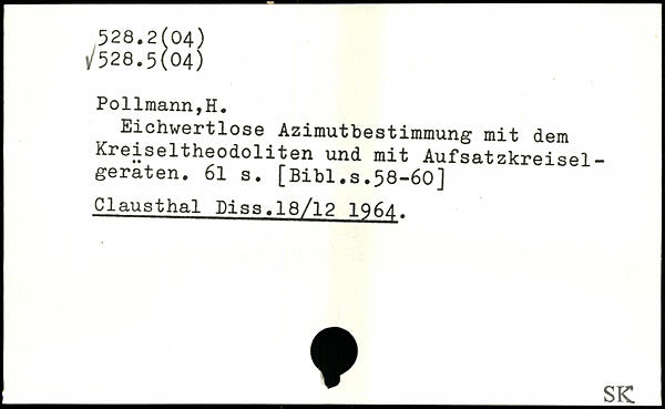 Eichwertlose Azimutbestimmung mit dem Kreiseltheodoliten und mit Aufsatzkreisel-geraten. 6l s.
