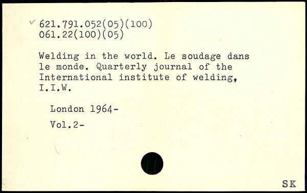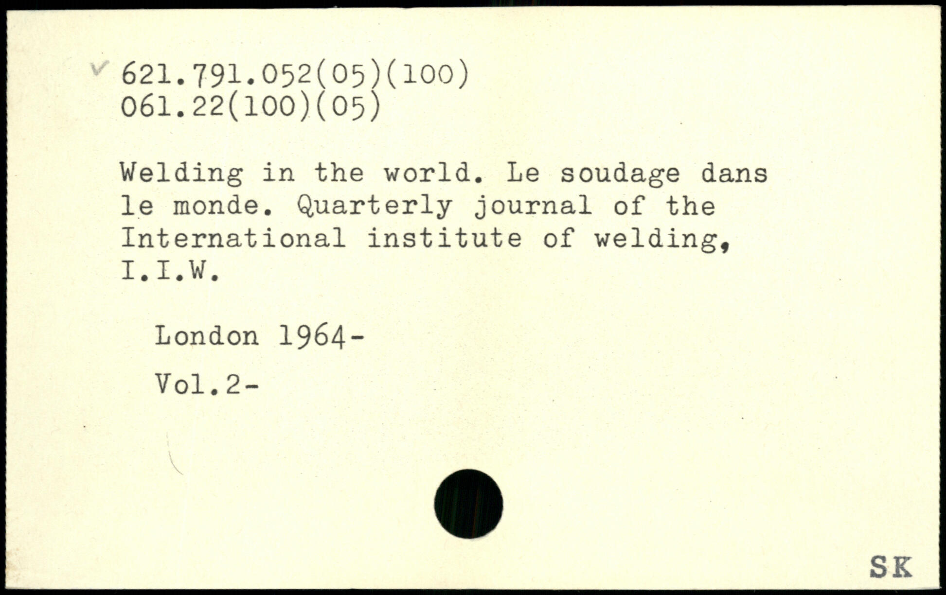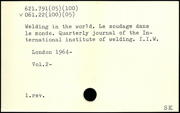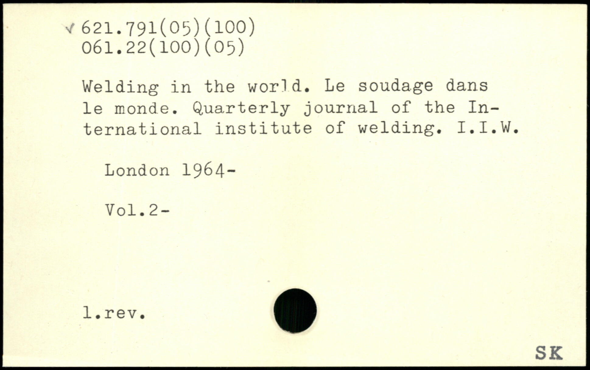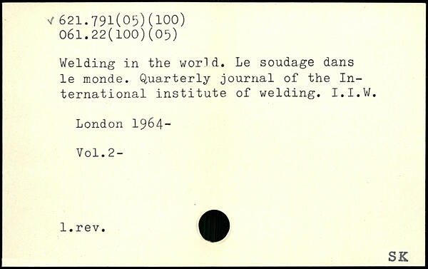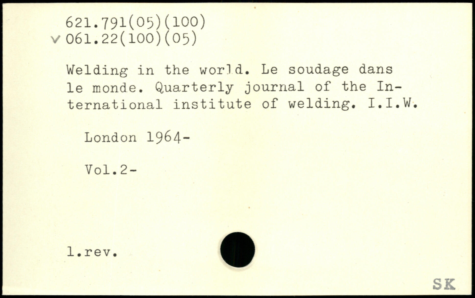 Welding in the world. Le soudage dans le monde. Quarterly journal of the International institute of welding. I.I.W.