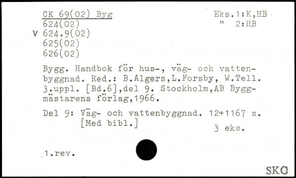 Bygg. Handbok för hus-, väg- och vattenbyggnad. Red.: B.Algers,L.Forsby, W.Tell.