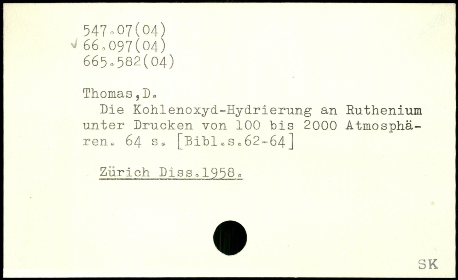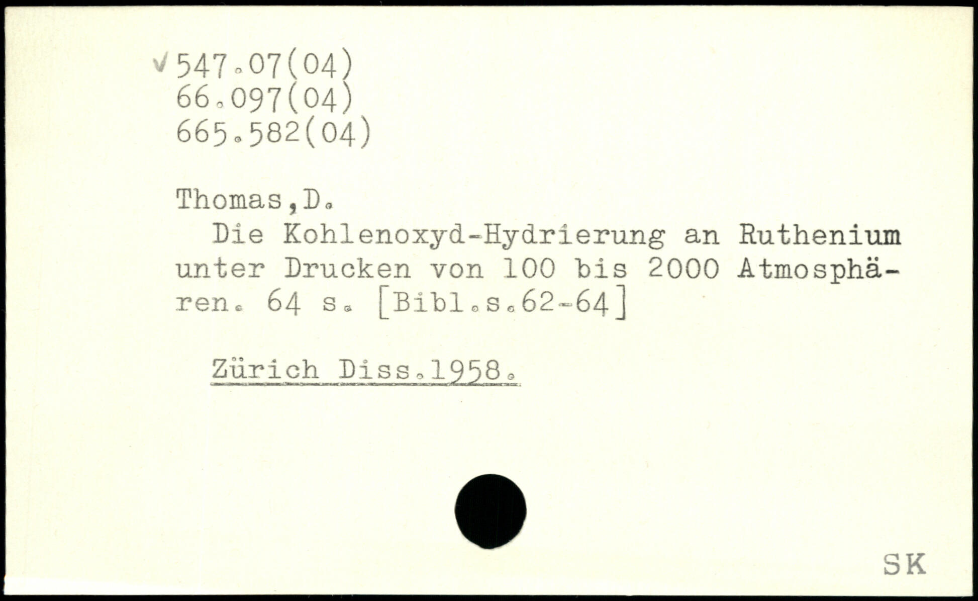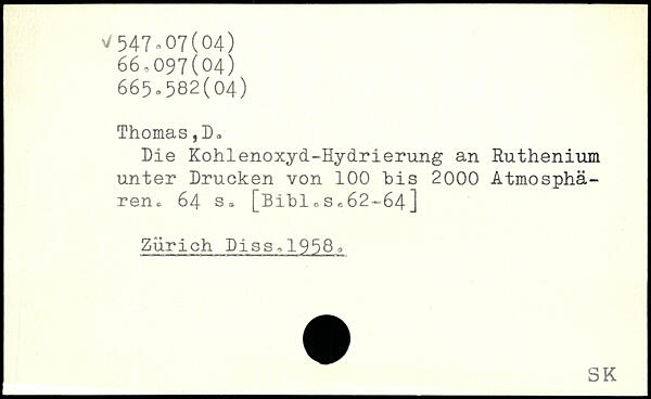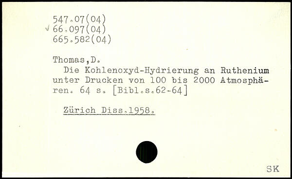 hie Kohlenoxyd-Hydrierung an Ruthenium unter Drucken von 100 bis 2000 Atmosphären.