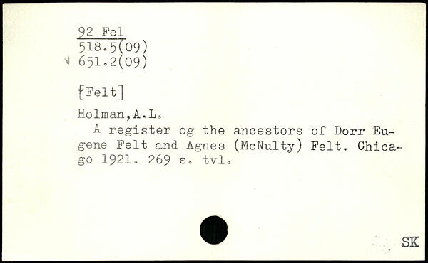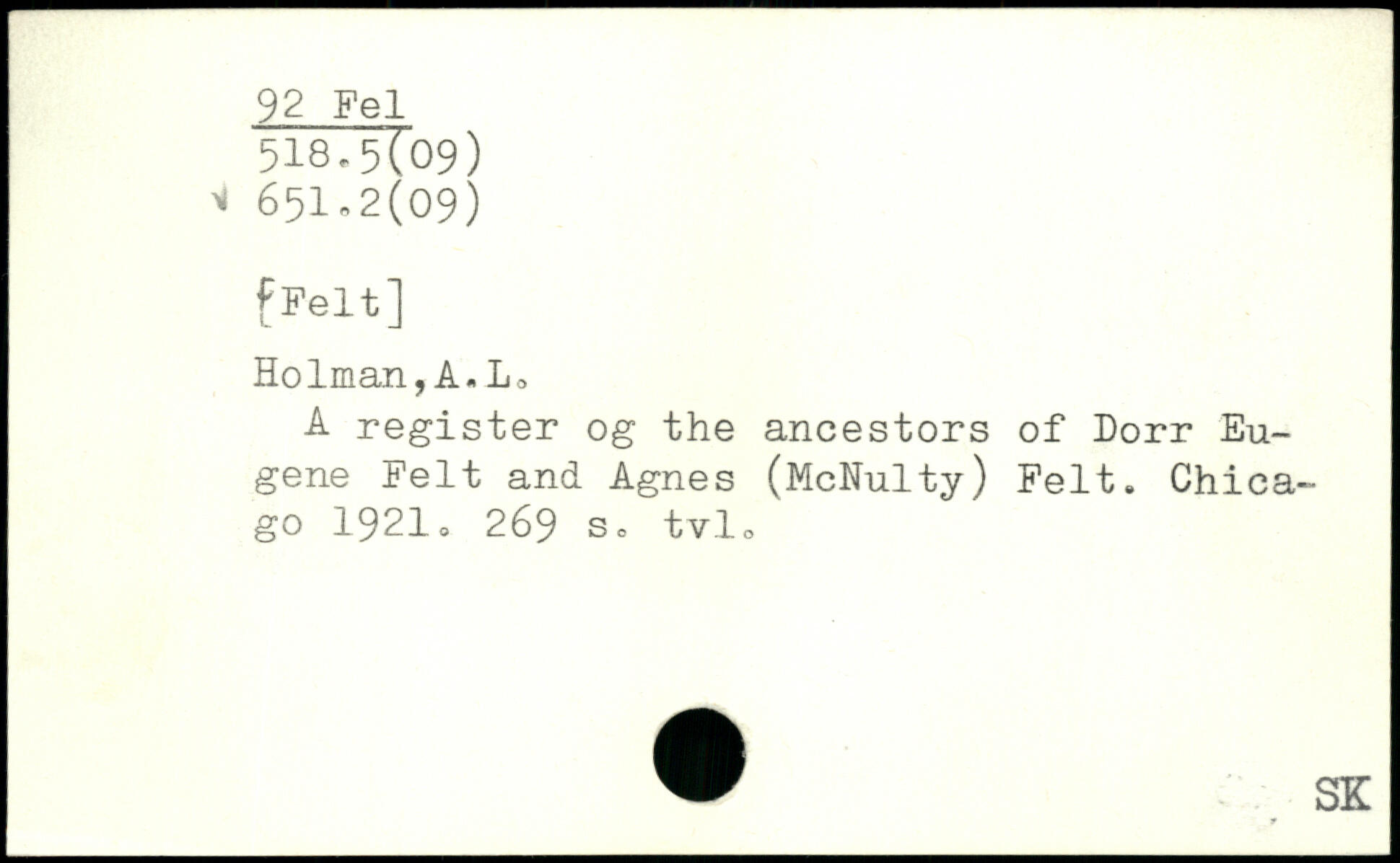 A register og the ancestors of Dorr Eugene Pelt and Agnes (McNulty) Pelt.