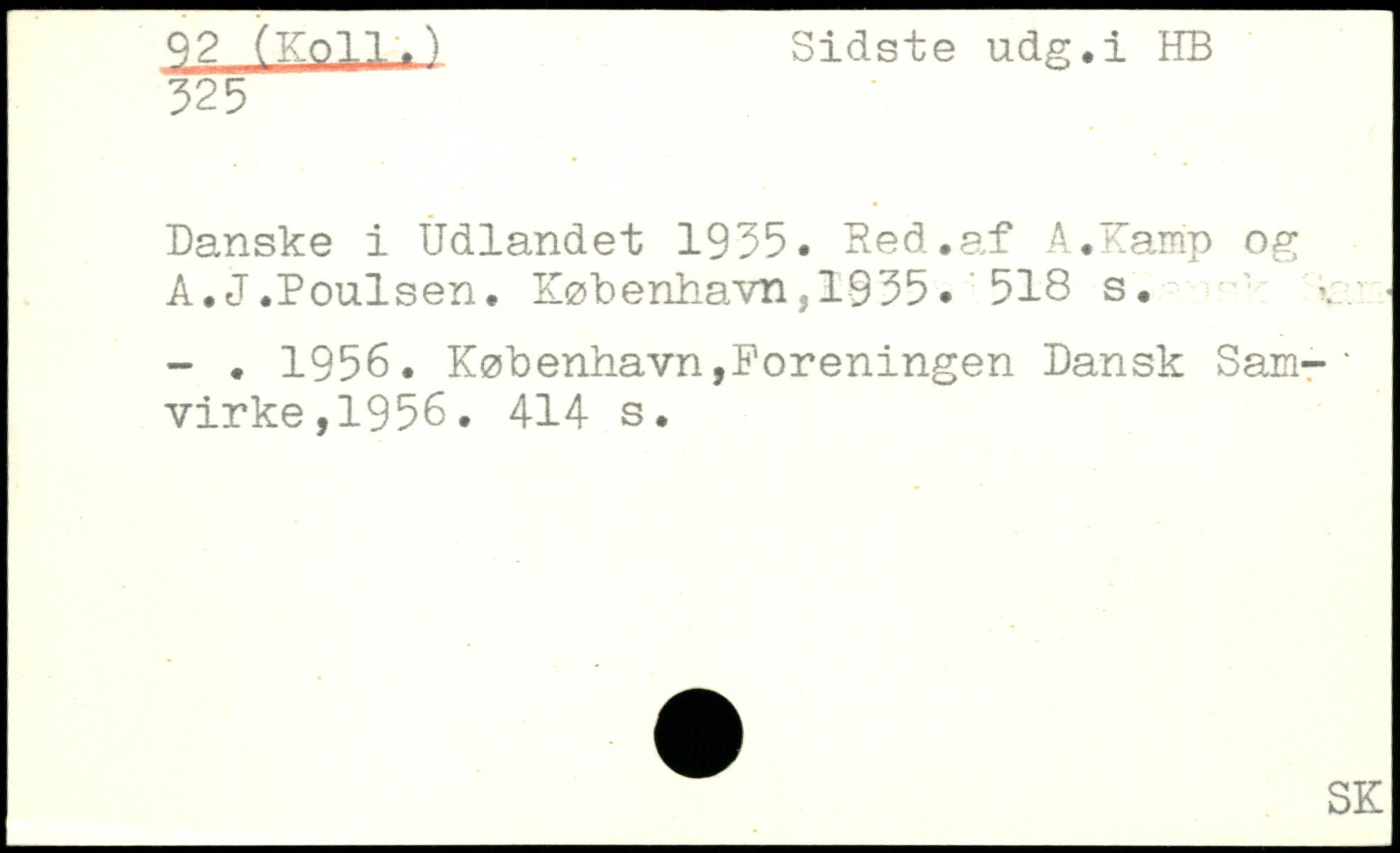 I.) Sidste udg.i 325 Danske i Udlandet 1935. Hed.af A.Kamp og A.J.Poulsen. København, 1935.