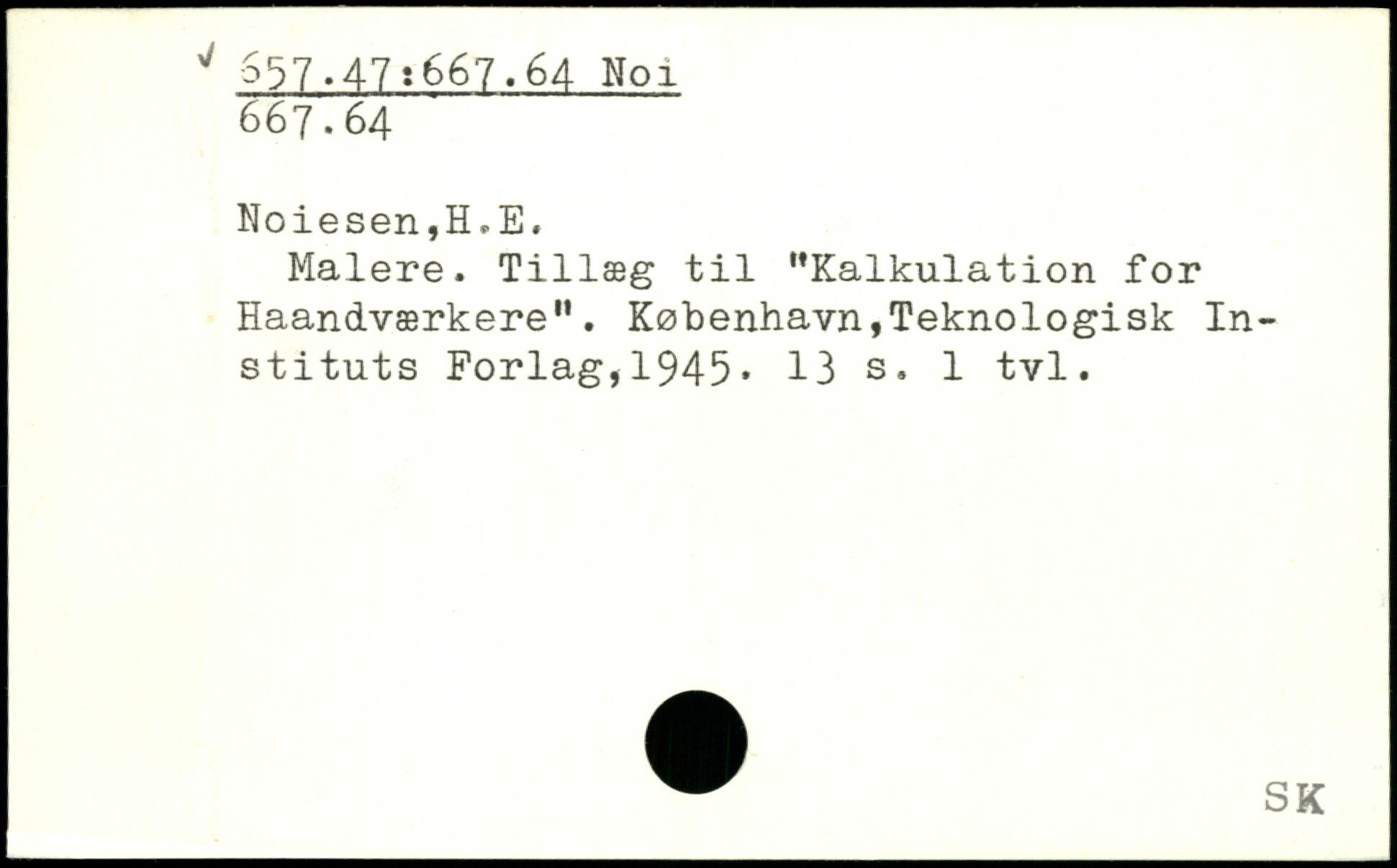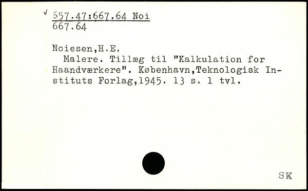 Malere. Tillæg til ”Kalkulation for Haandværkere”.