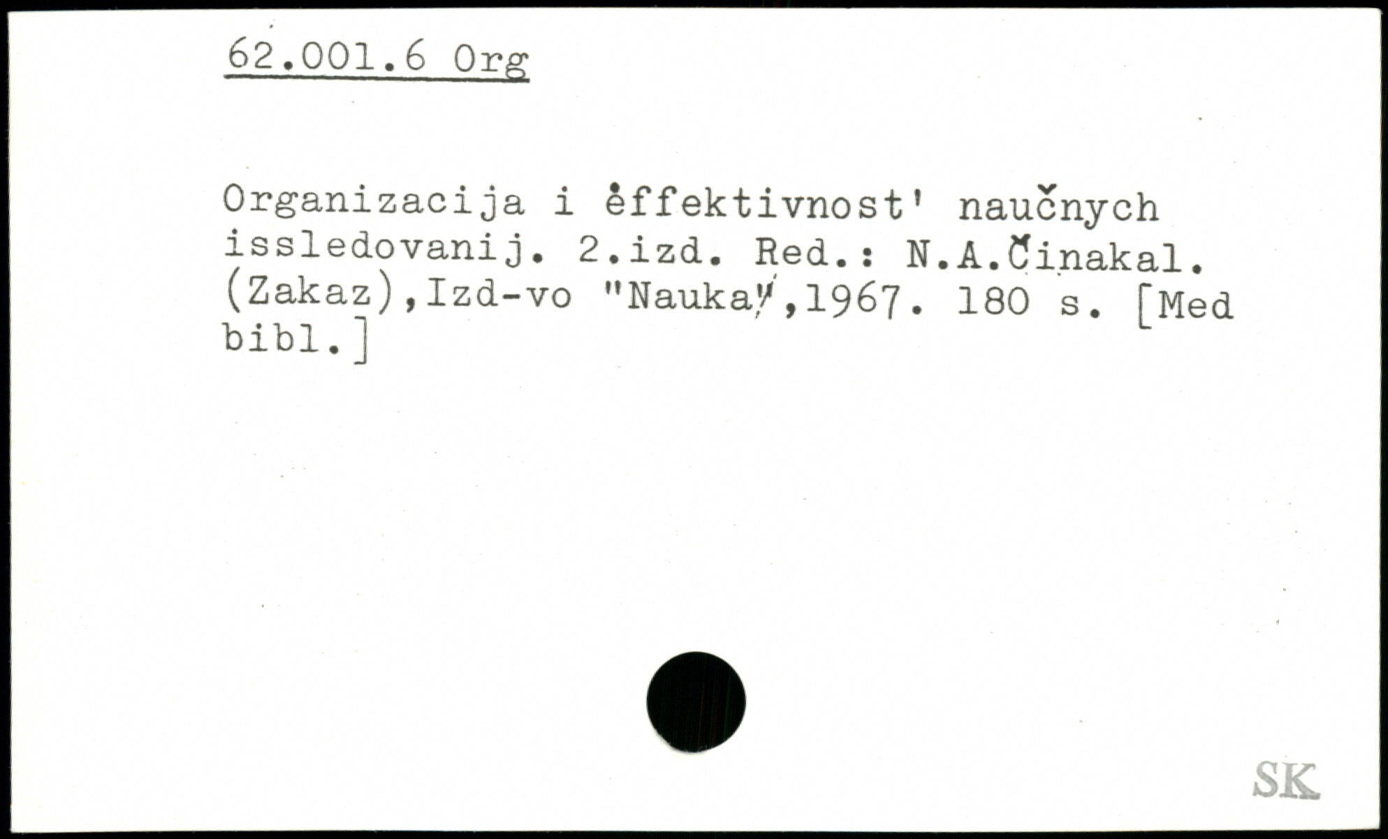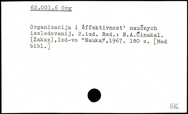 Organizacija i effektivnost' naucnych issledovanij. 2.izd. Red.! N.A.Cinakal. (Zakaz) , Izd-vo "Nauka'/, 1967.
