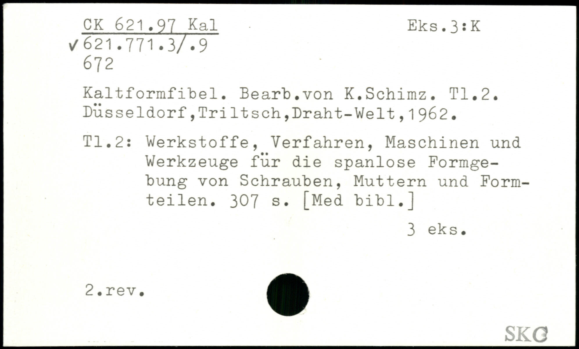 Kaltformfibel. Bearb.von K.Schimz. TI.2.