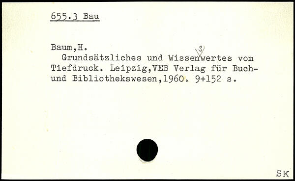 Baum,H. , s Grundsätzliches und Wissen'wertes vom Tiefdruck. Leipzig,VEB Verlag für Buch-und Bibliothekswesen,1960.