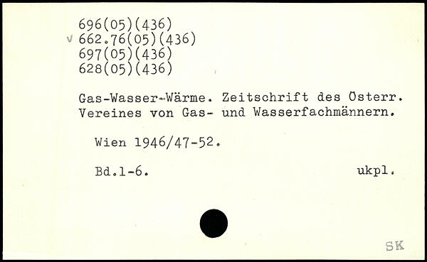 Gas-Wasser-Wärme. Zeitschrift des österr. Vereines von Gas- und Wasserfachmännern.