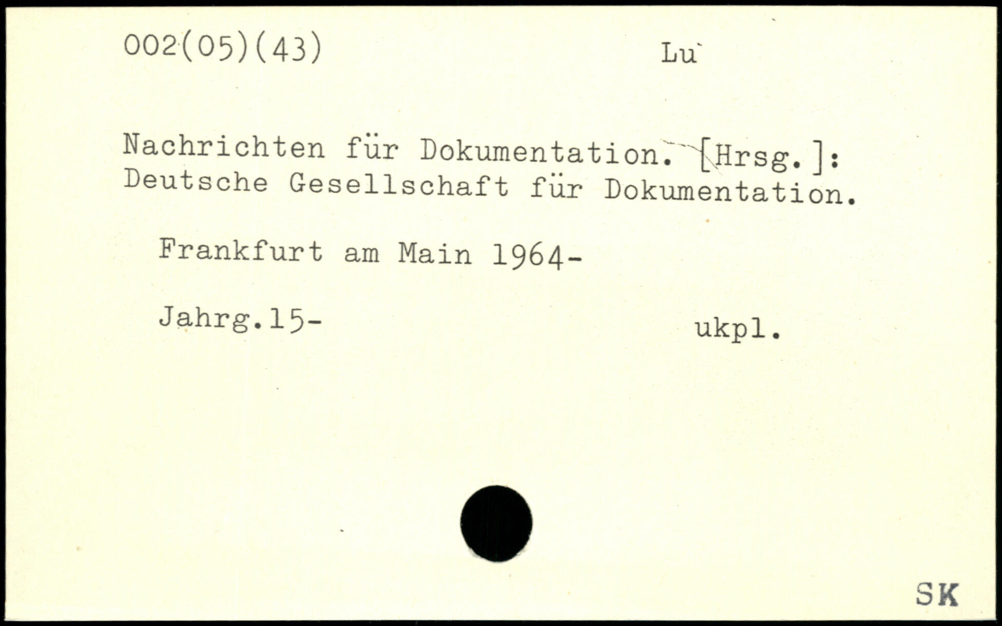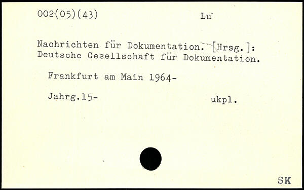 Nachrichten für Dokumentation7'"[\Hrsg. ] : Deutsche Gesellschaft für Dokumentation.