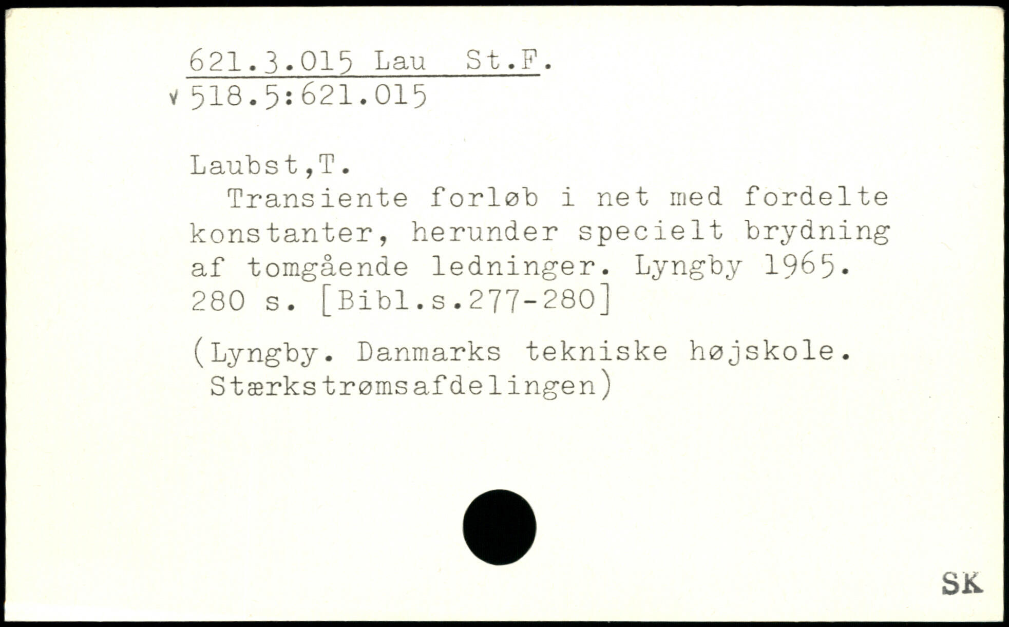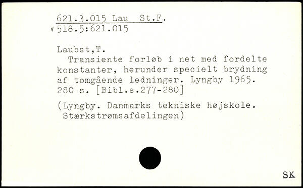 Transiente forløb i net nied fordelte konstanter, herunder specielt brydning af tomgående ledninger. Lyngby 1965.