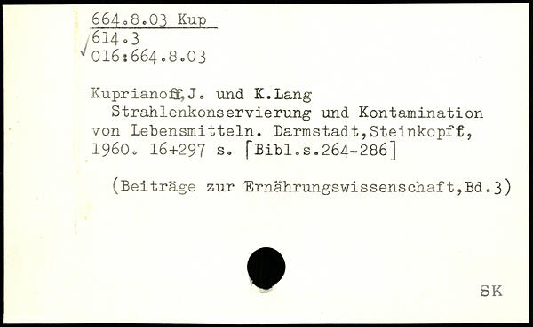 Strahlenkonservierung und Kontamination von Lebensmitteln. Darmstadt,Steinkopf£, 1960c