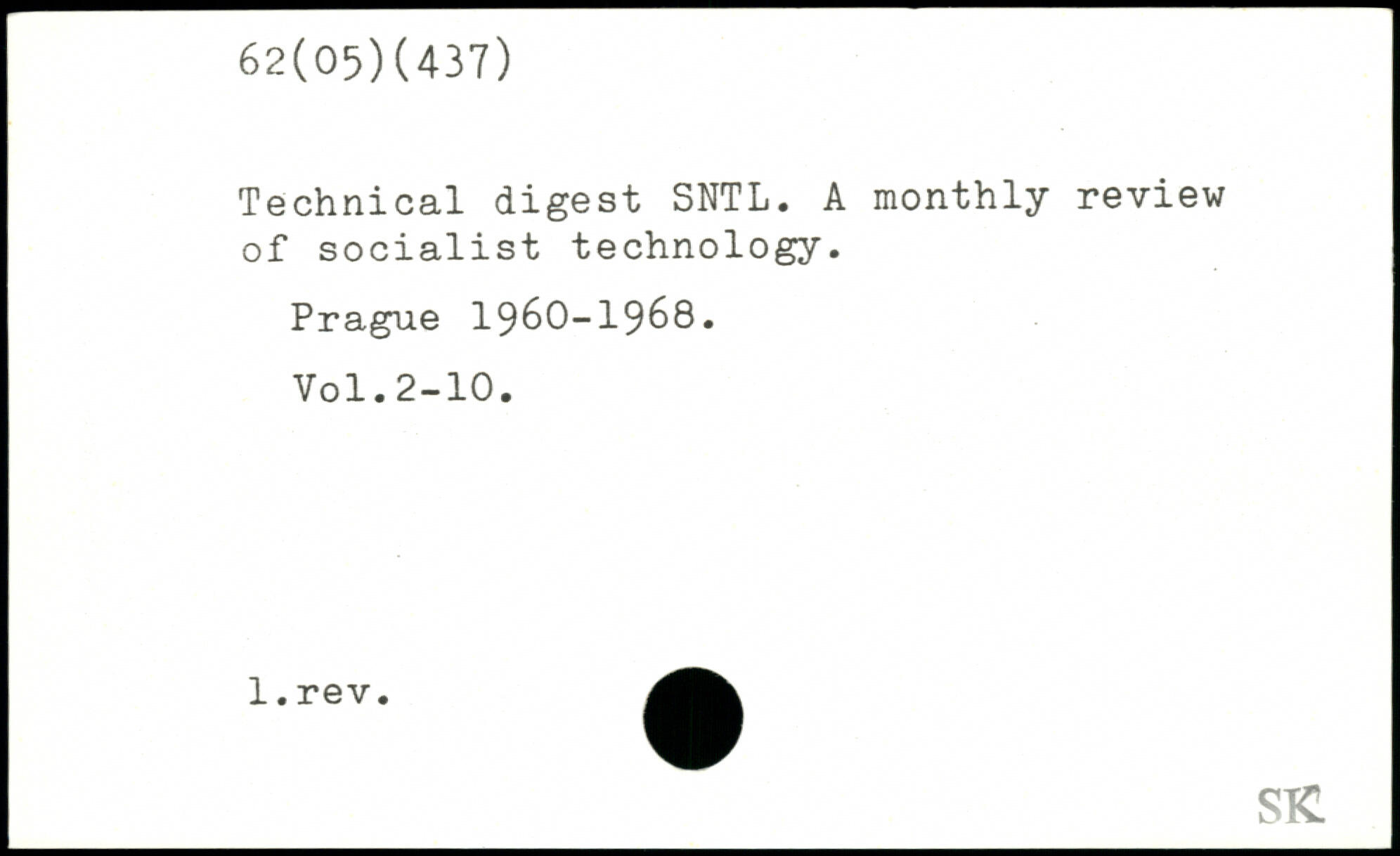 Technical digest SNTL. A monthly review of socialist technology.