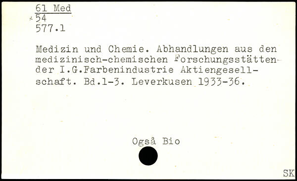 Medizin und Chemie. Abhandlungen aus den medizinisch-chemischen i’orschungsstattender I.G.Farbenindustrie Aktiengesellschaft.