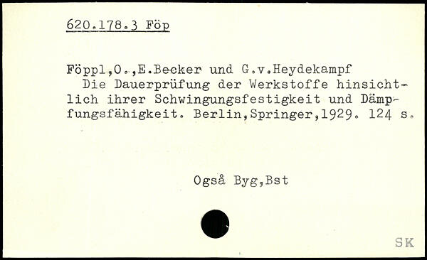 Die Dauerprüfung der Werkstoffe hinsichtlich ihrer Schwingungsfestigkeit und Dämp~ fungsfähigkeit.