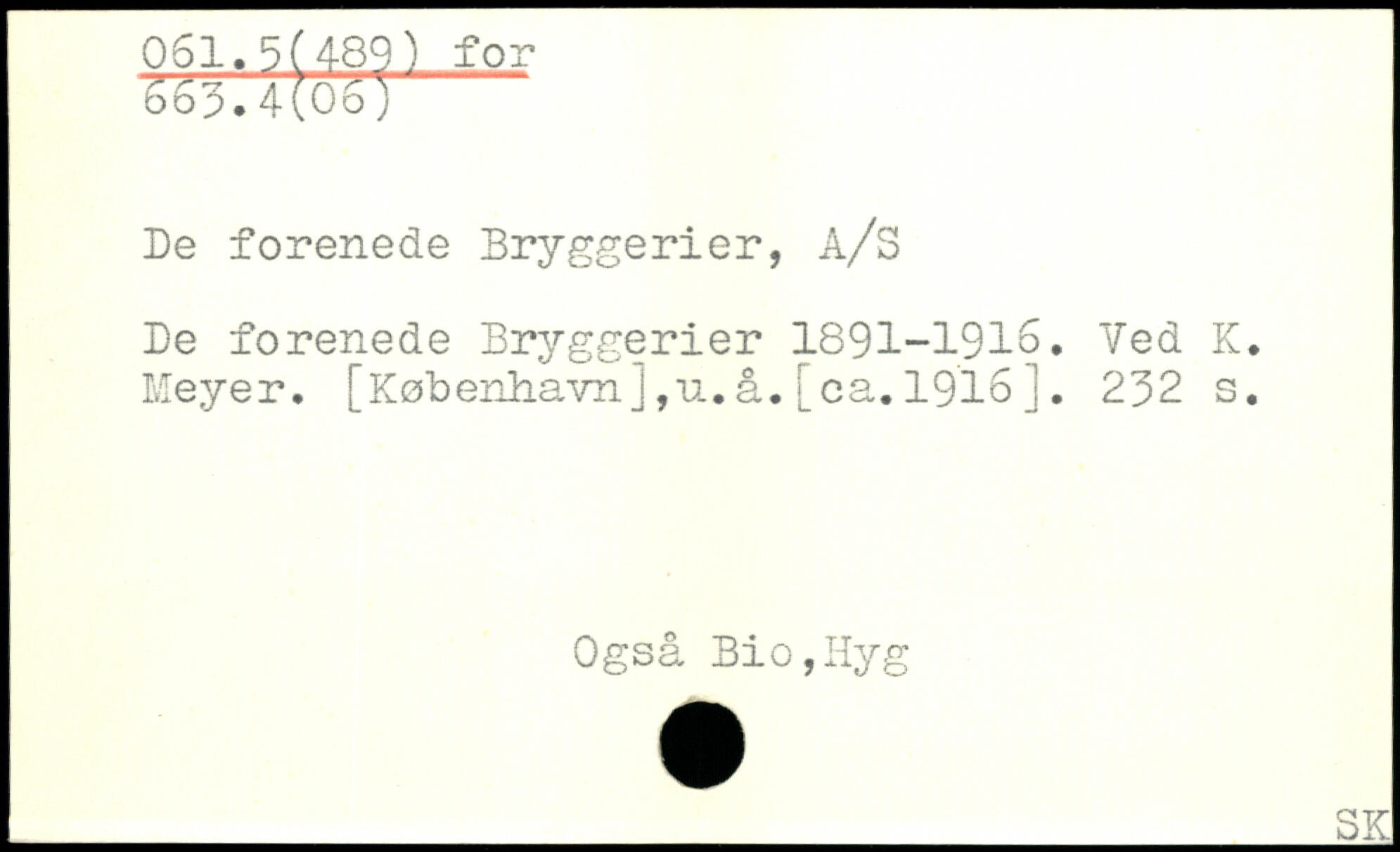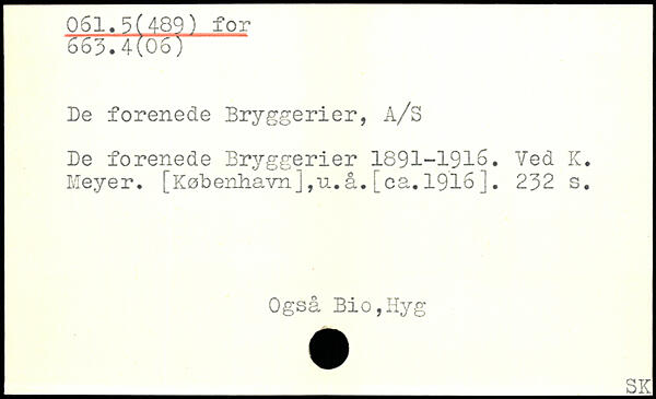 De forenede Bryggerier, A/S De forenede Bryggerier 1891-1916. Ved K. Meyer. [Københavnj,u.å.[ca.1916].