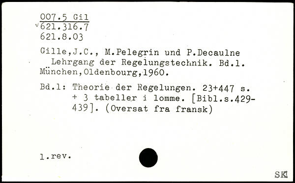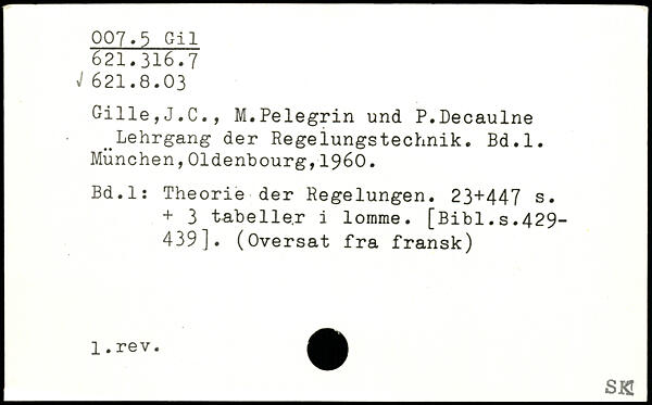 Gille,J.C., M.Pelegrin und P.Decaulne ^Lehrgang der Regelungstechnik. Bd.l.
