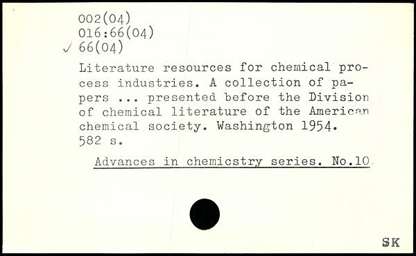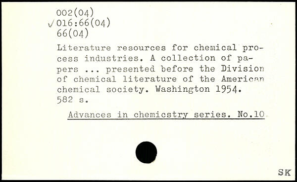 Literature resources for chemical process industries. A collection of papers ... presented before the Division of chemical literature of the American chemical society.