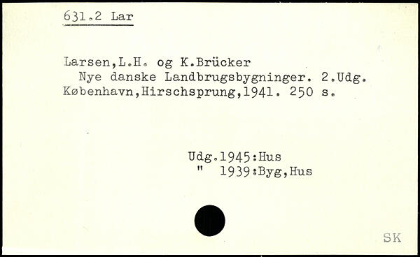 Larsen,L.H, og K.Briicker Nye danske Landbrugsbygninger. 2.Udg.