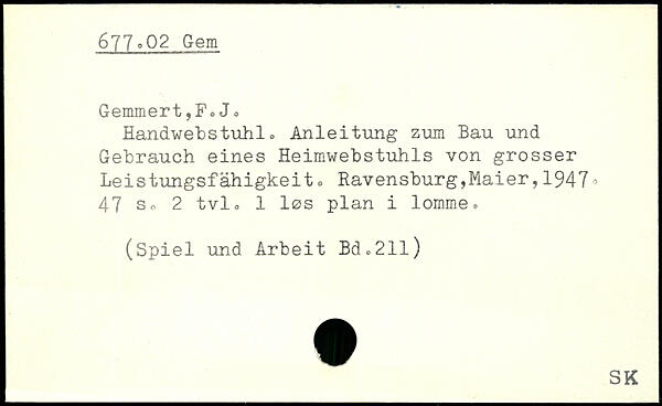 Handwebstuhlo Anleitung zum Bau und Gebrauch eines Heimwebstuhls von grosser Leistungsfähigkeit.