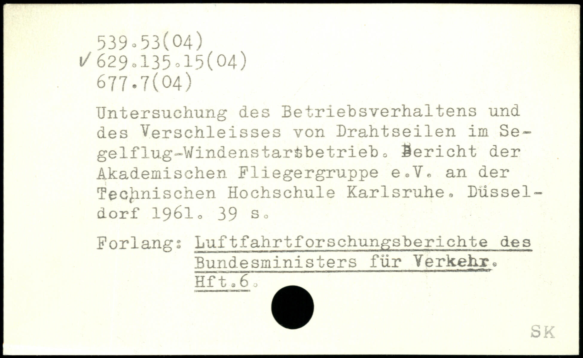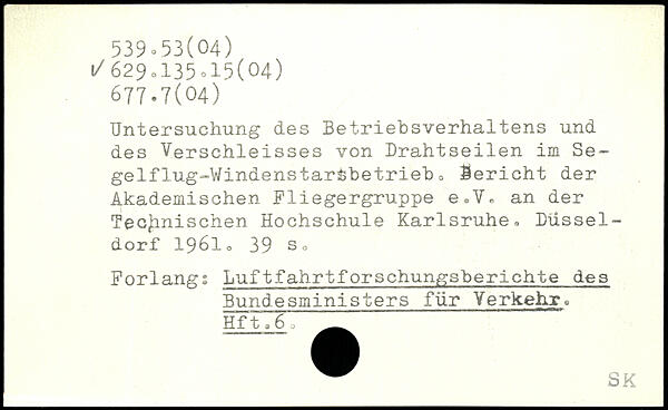 Untersuchung des Betriehsverhaltens und des Verschleisses von Drahtseilen im Se-gelflug-Windenstarfcbetrieb, Sericht der Akademischen Fliegergruppe eJ. an der Technischen Hochschule Karlsruhe, Düsseldorf 1961o