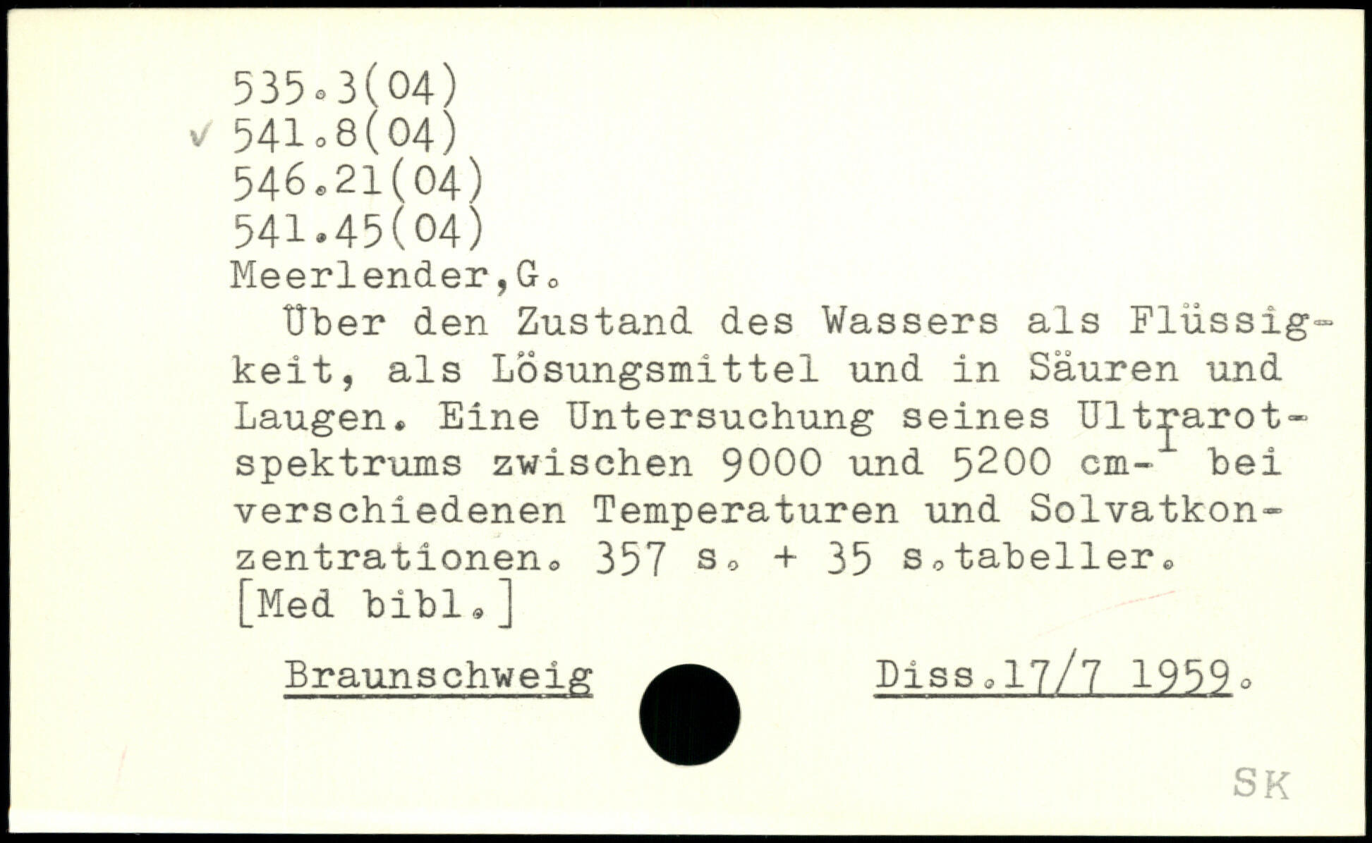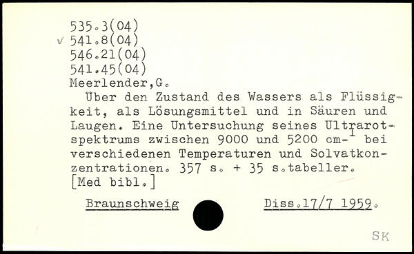 Uber den Zustand des Wassers als Flüssigkeit, als Lösungsmittel und in Säuren und Laugen, Eine Untersuchung seines Ultrarot-Spektrums zwischen 9000 und 5^00 cm- bei verschiedenen Temperaturen und Solvatkon-zentrationen0
