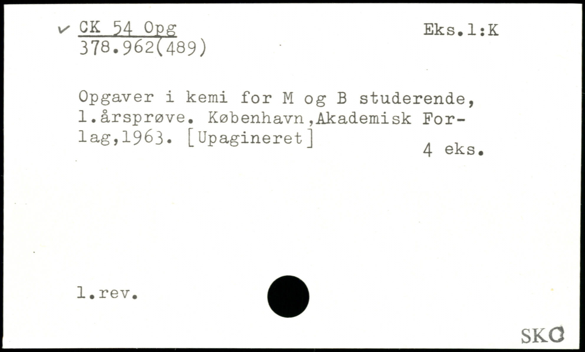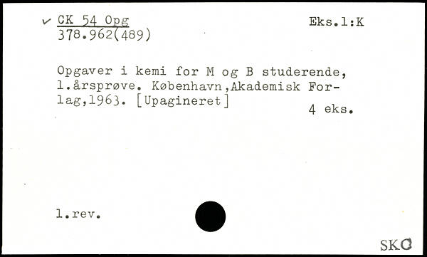 Opgaver i kemi for M og B studerende, 1.årsprøve.
