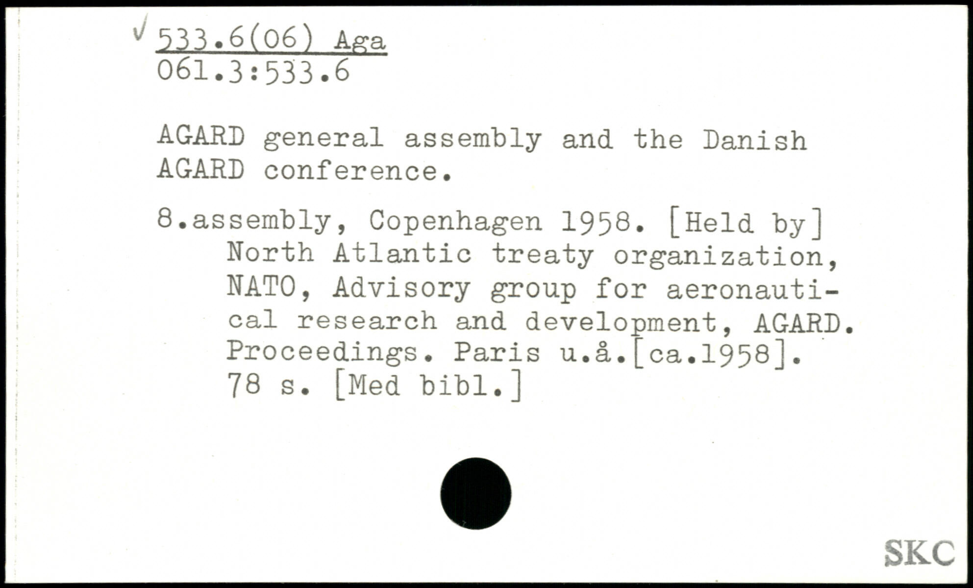 AGARD general assembly and the Danish AGARD conference. 8.assembly