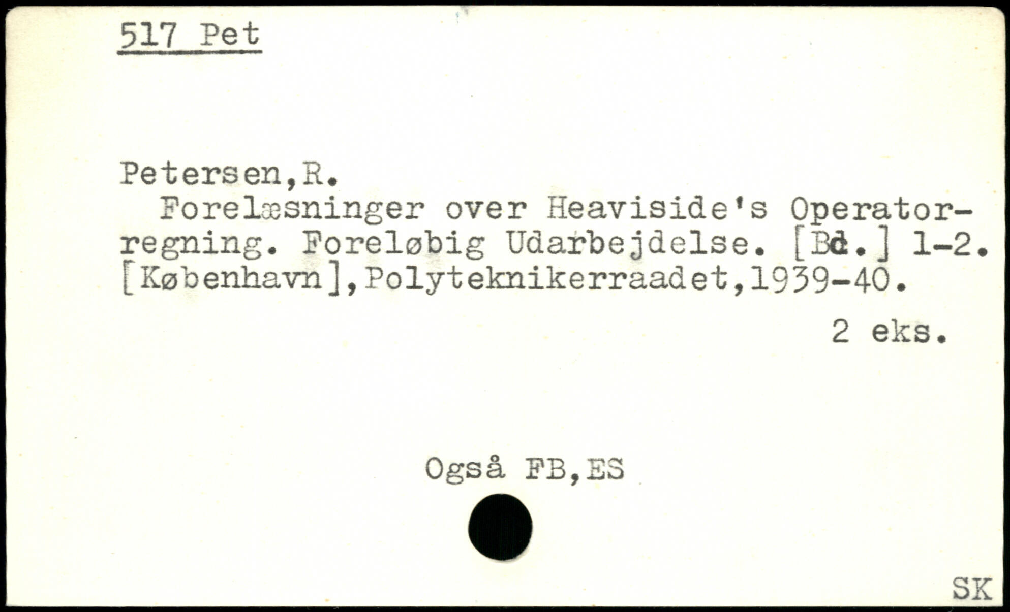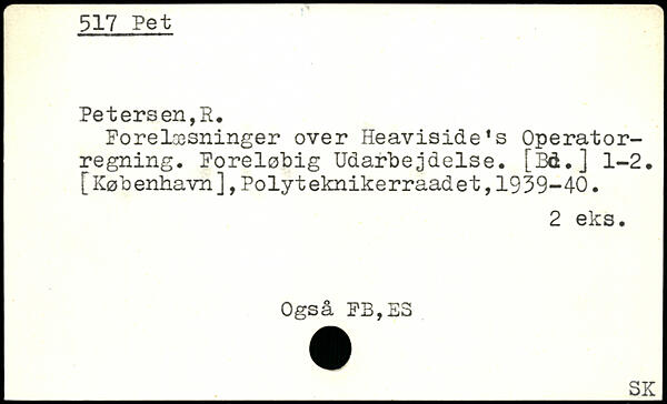 Forelæsninger over Heavisidefs Operatorregning. Foreløbig Udarbejdelse. [3d.] 1-2. [København],Polyteknikerraadet,1939-40.
