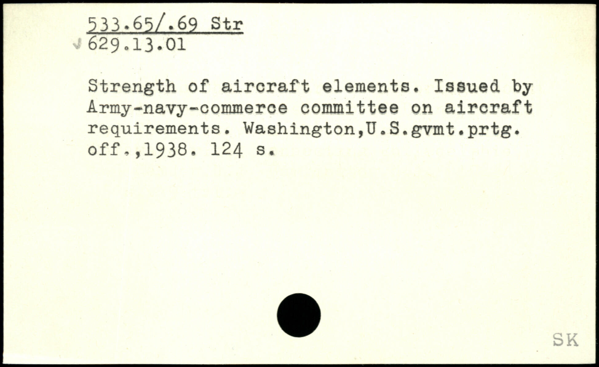 Strength of aircraft elements. Issued by Army-navy-commerce committee on aircraft requirements. Washington,U.S.gvmt.prtg. off,,1938.
