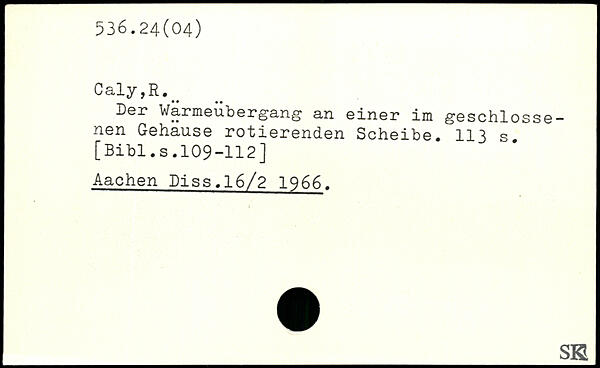Der Wärmeübergang an einer im geschlossenen Gehäuse rotierenden Scheibe.