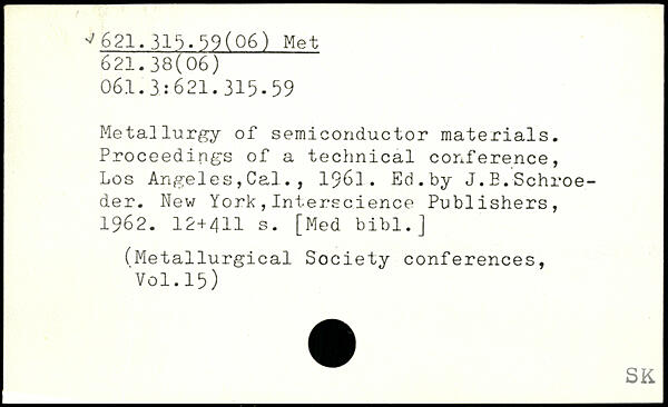 Metallurgy of semiconductor materials. Proceedings of a technical conference