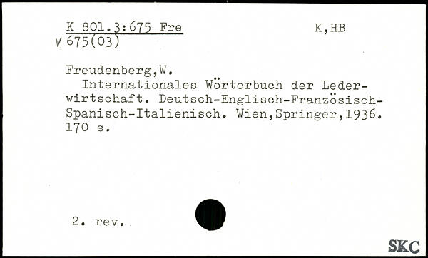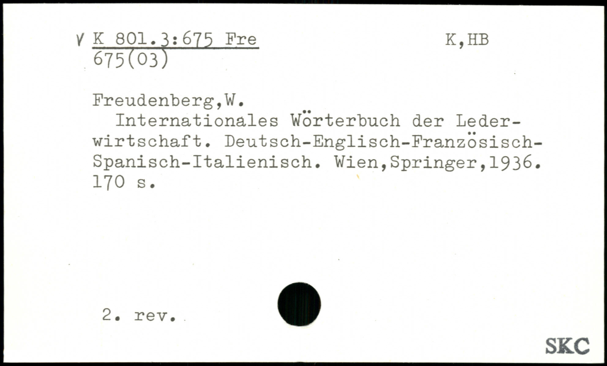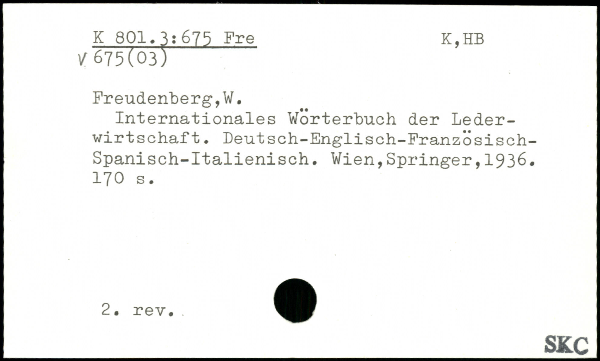 Internationales Wörterbuch der Lederwirtschaft. Deutsch-Englisch-Französisch-Spanisch-Italienisch.