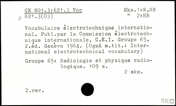 Vocabulaire électrotechnique international. Publ.par la Commission electrotech-nique internationale, C.E.I. Groupe 65.